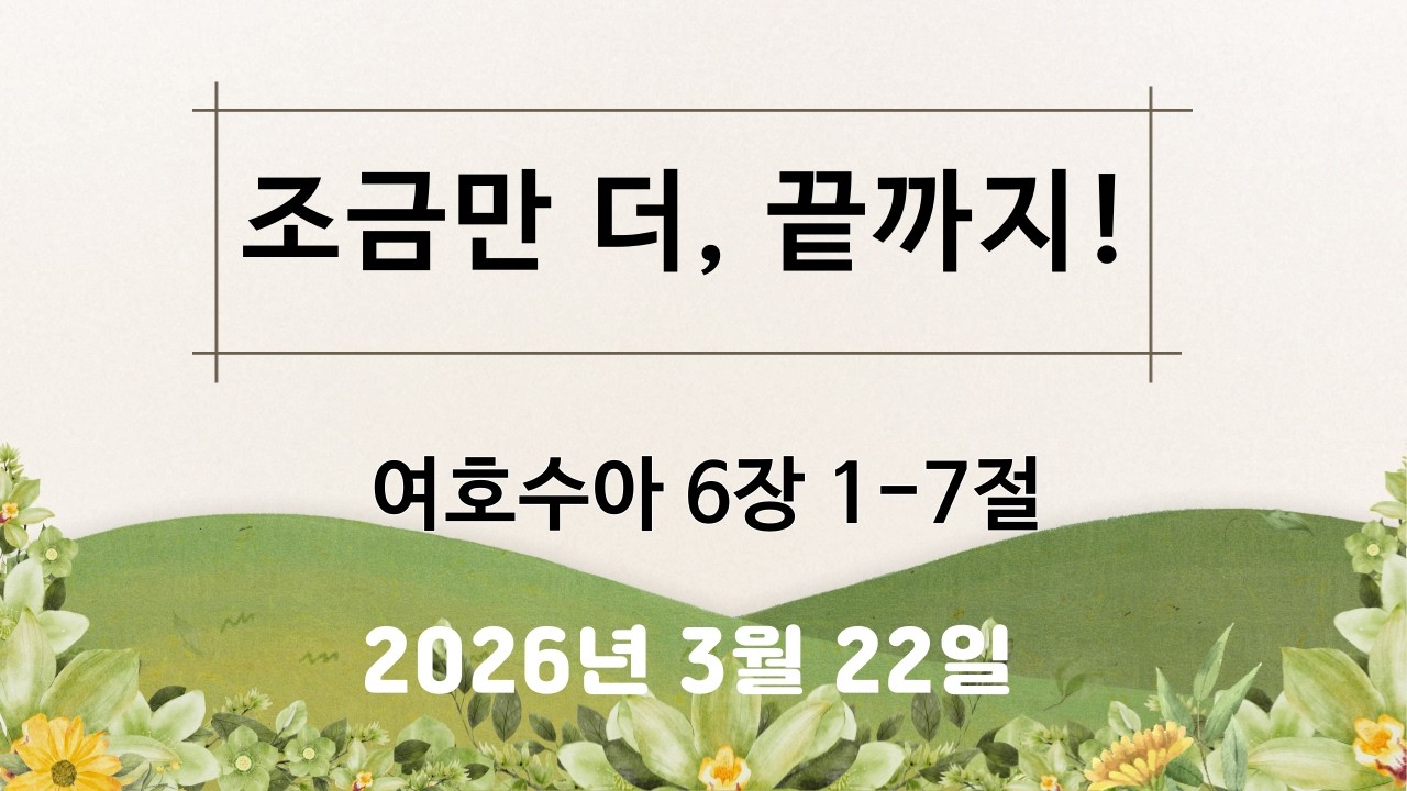 본문 : 여호수아 6장 1-7절 설교자 : 황기섭 목사 설교일자 : 2026.03.22