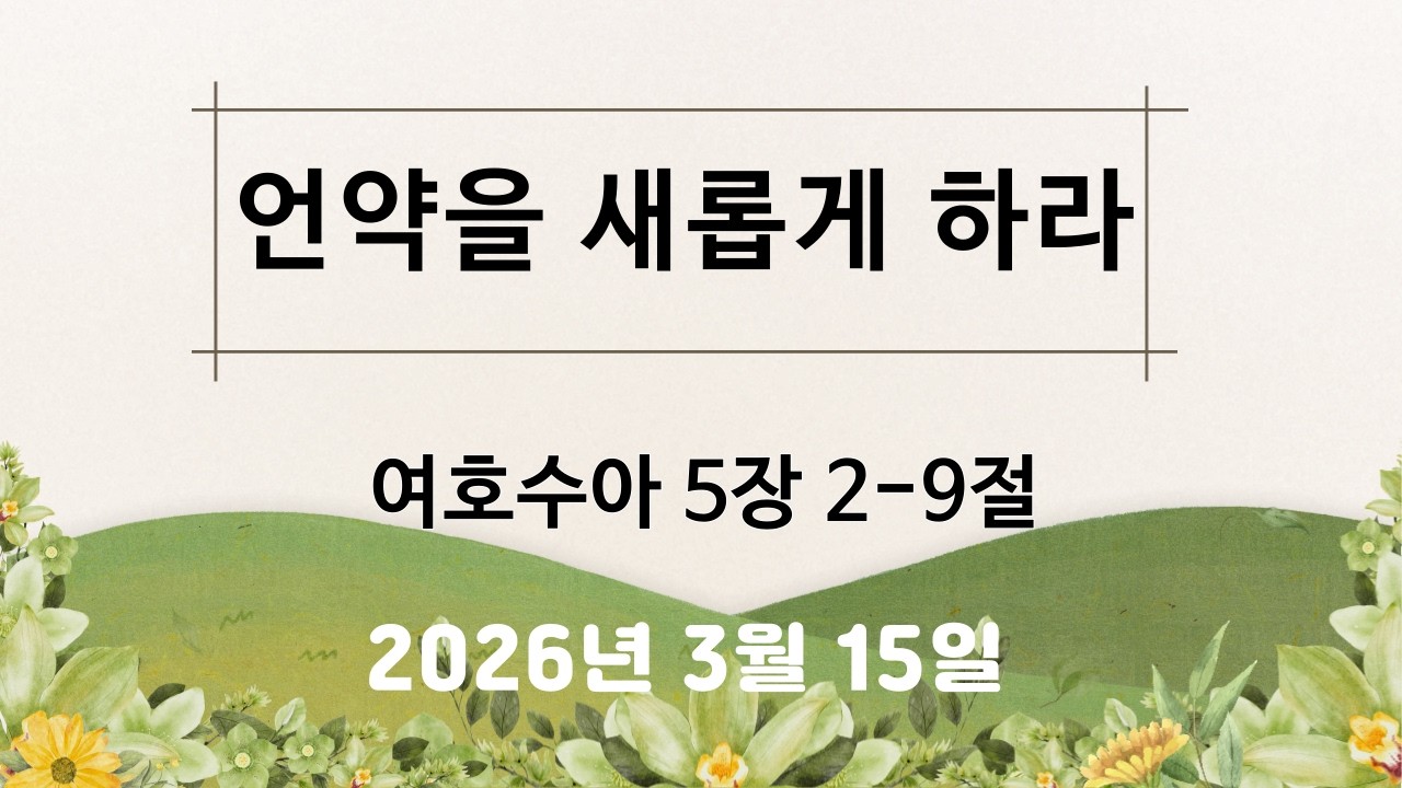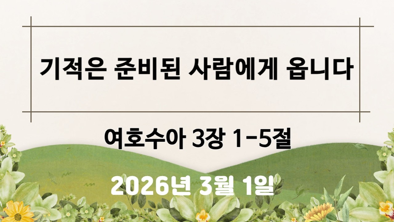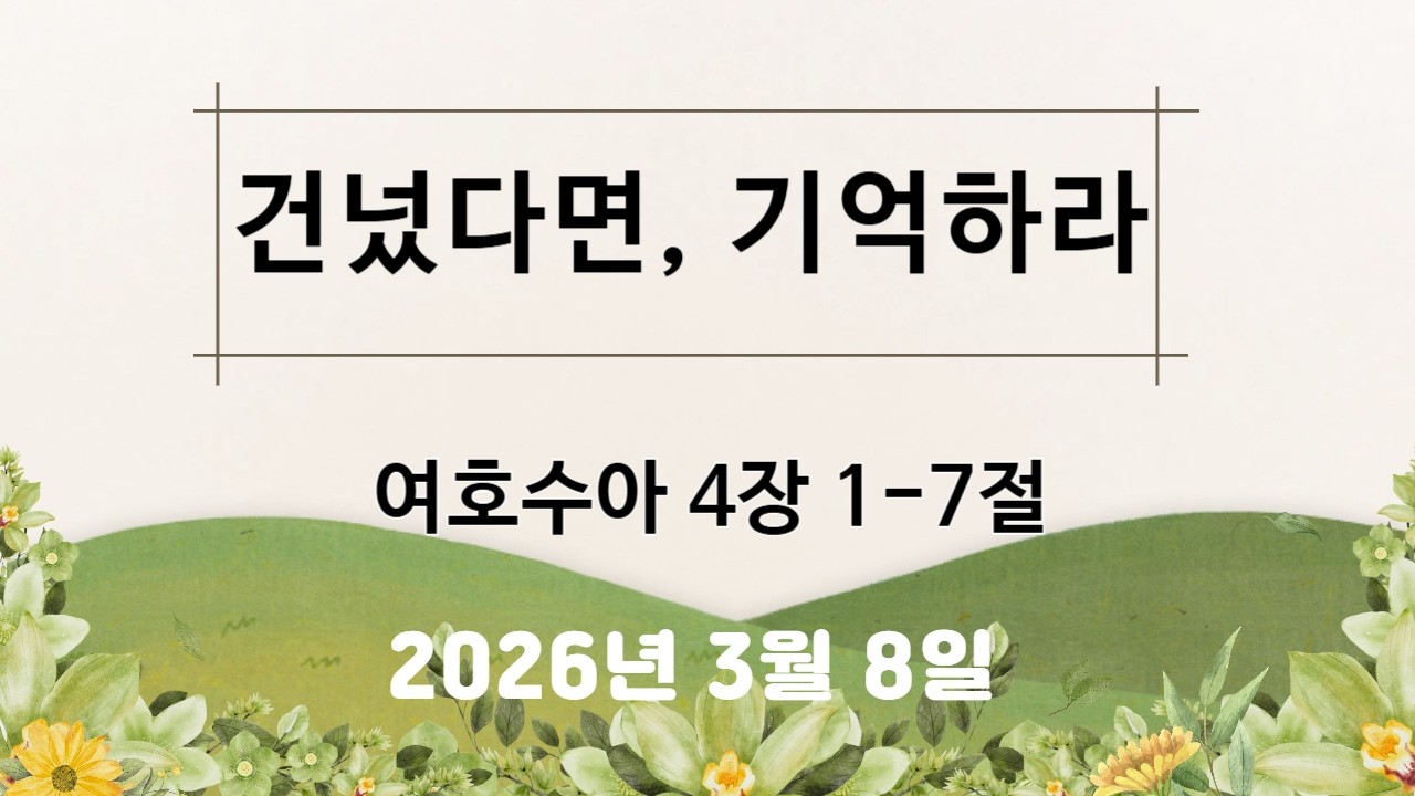 본문 : 여호수아 4장 1-7절 설교자 : 황기섭 목사 설교일자 : 2026.03.08