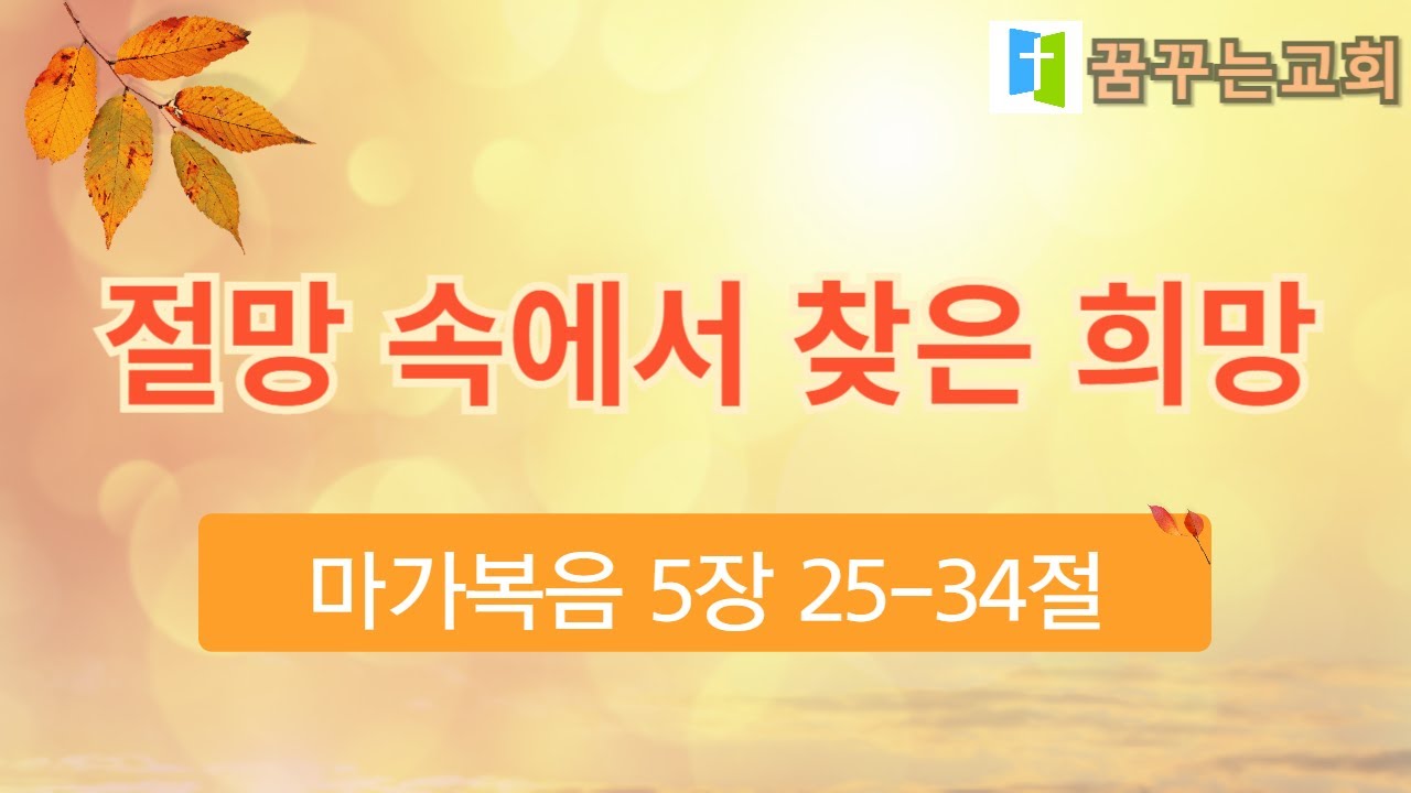 본문 : 마가복음 5장 25~34절 설교자 : 황기섭목사 설교일자 : 2024년 10.13
