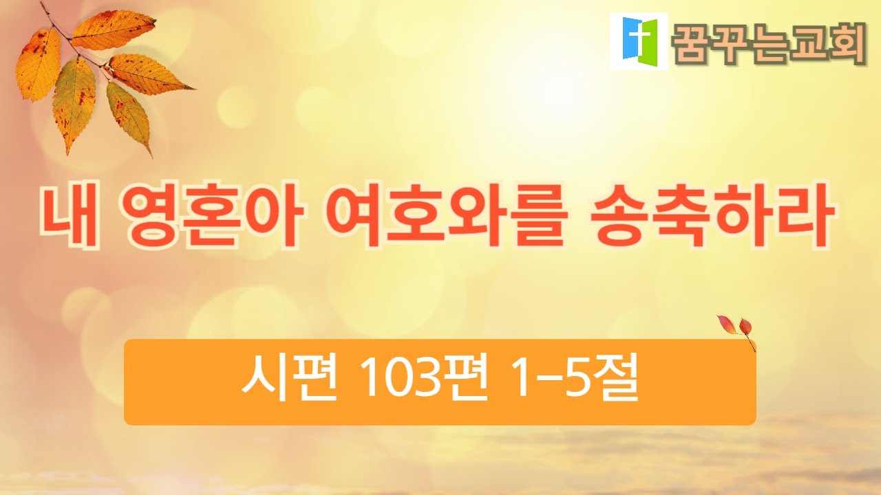 본문 : 시편 103편 1~5절 설교자 : 황기섭 목사 설교일자 : 2024.11.10