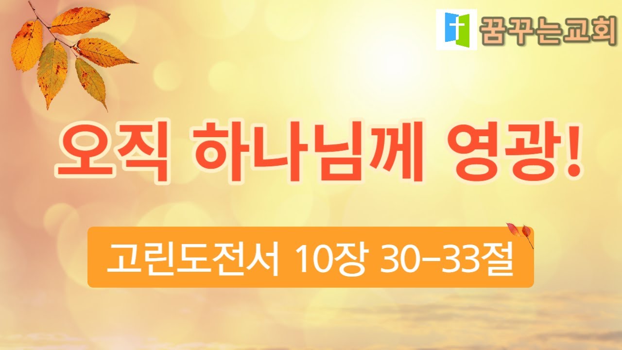 본문 : 고전10:31-33 설교자 : 황기섭 목사 설교일자 : 2023. 11.05.